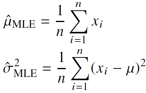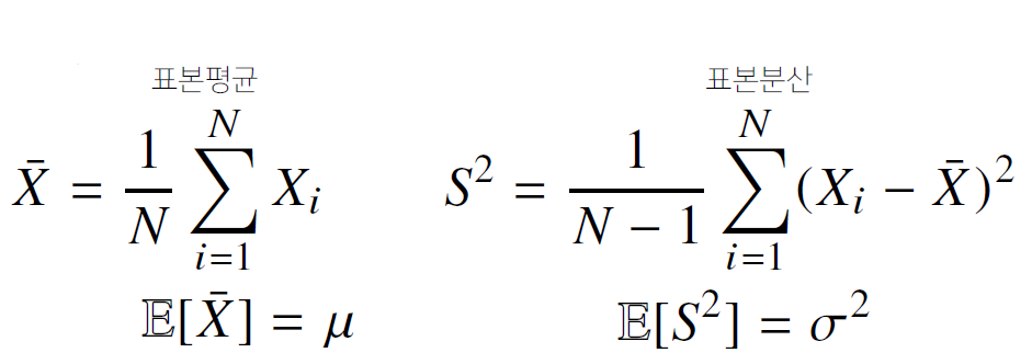 정규분포의 경우 모수는 평균 μ 과 분산 σ² 이고, 이를 추정하는 통계량은 아래와 같다