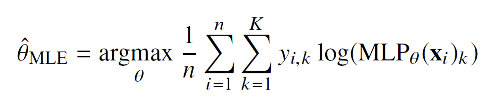 딥러닝 모델의 가중치 θ = (W(1), …, W(L))라 표기했을 때 분류 문제에서 소프트맥스 벡터는 카테고리분포의 모수(p1, …, p_k)를 모델링