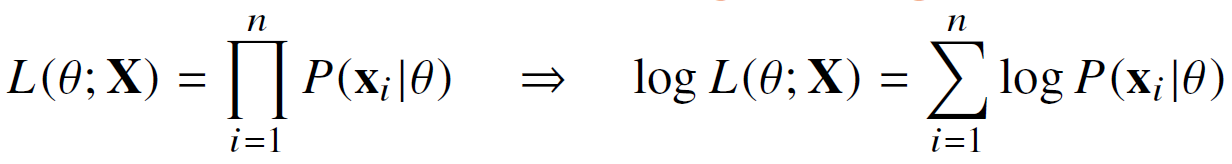 데이터 X가 독립적으로 추출되었을 경우 곱을 사용할 수 있고, 이에 로그함수를 적용하여 로그 가능도를 최적화