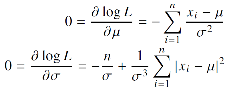 두 미분이 0이 되는 μ와 θ를 찾아서 가능도 최대화