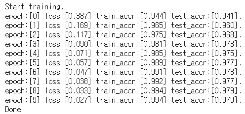 train acc : 0,994, test_acc : 0.979MNIST 학습 결과