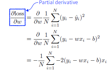 Gradient Descent : Loss를 각 파라미터로 편미분하여 0이 되는 방향으로 이동(=편미분값에 적절한 값을 곱해서 기존 값에서 뺼셈)