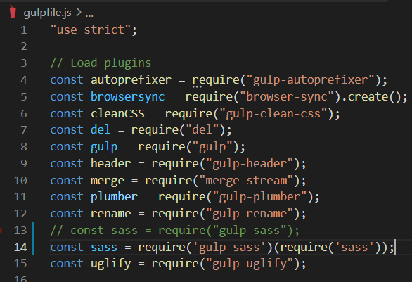 - 변경 전 : const sass = require("gulp-sass");