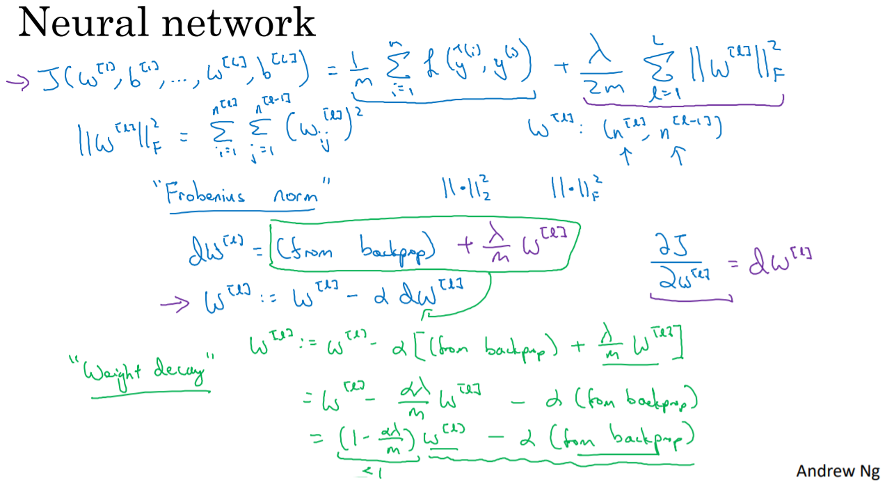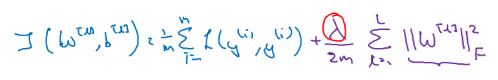 - L2 regularization is also called "Frobenius norm". It means the sum of square of elements of a matrix