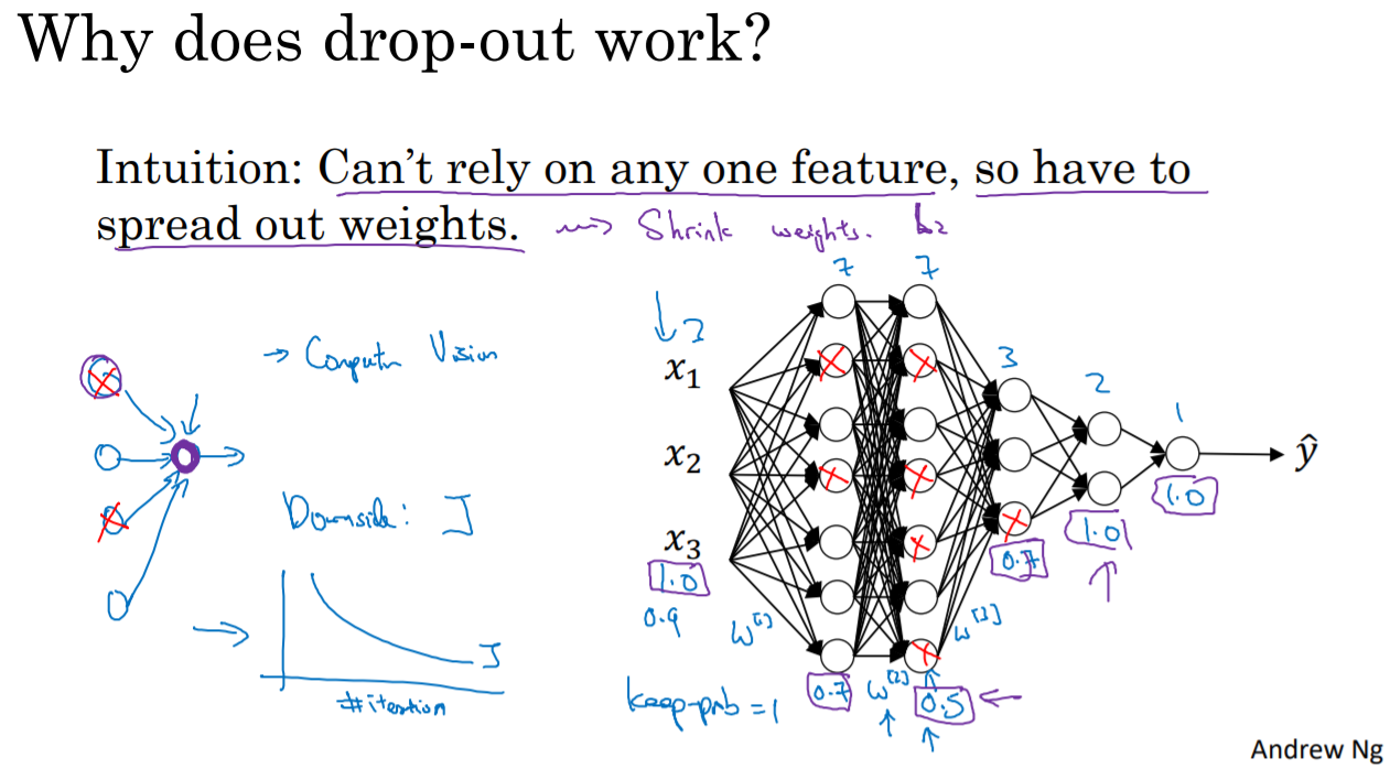 In computer vision, the input sizes is so big in putting all these pixels that you almost never have enough data. And so dropout is very frequently used by the computer vision and there are some common vision research that dropout is pretty much always used as a default.