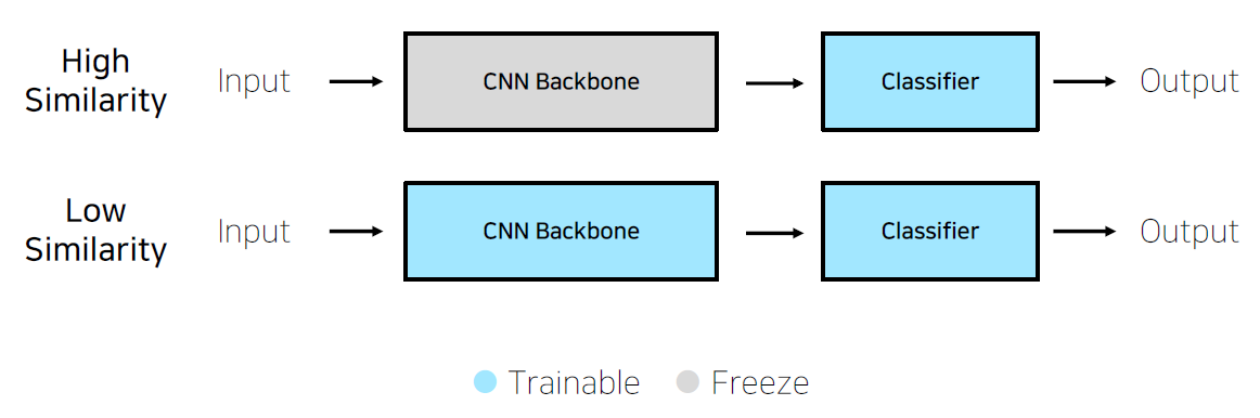 - Pretrainied model을 사용할 때는 내 데이터, 내 모델과의 유사성을 고려해야 한다.