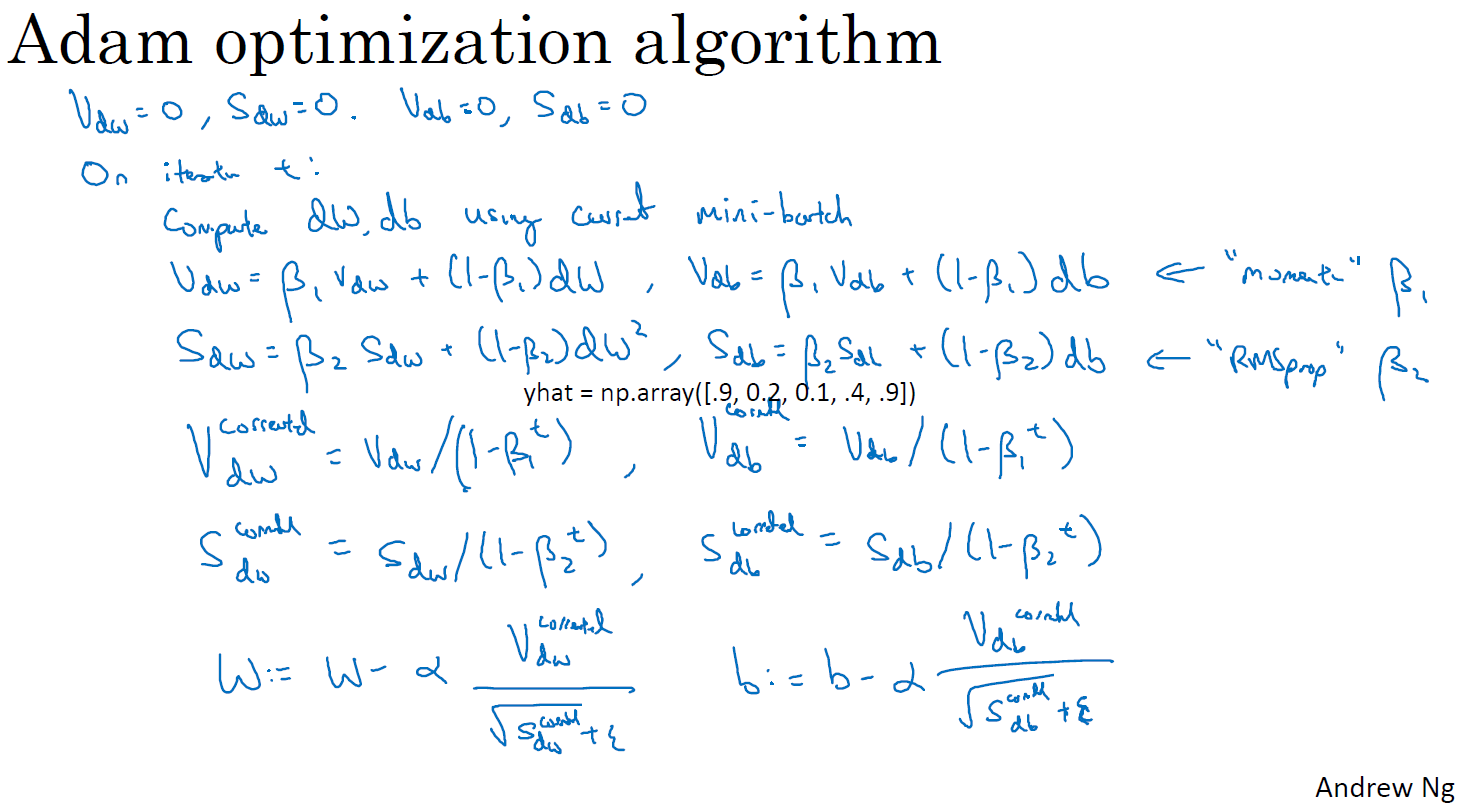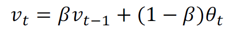 - vt(biascorrection)โ = vtโ/(1−βt) = {βvt−1โ+(1−β)θtโ}/(1−βt)