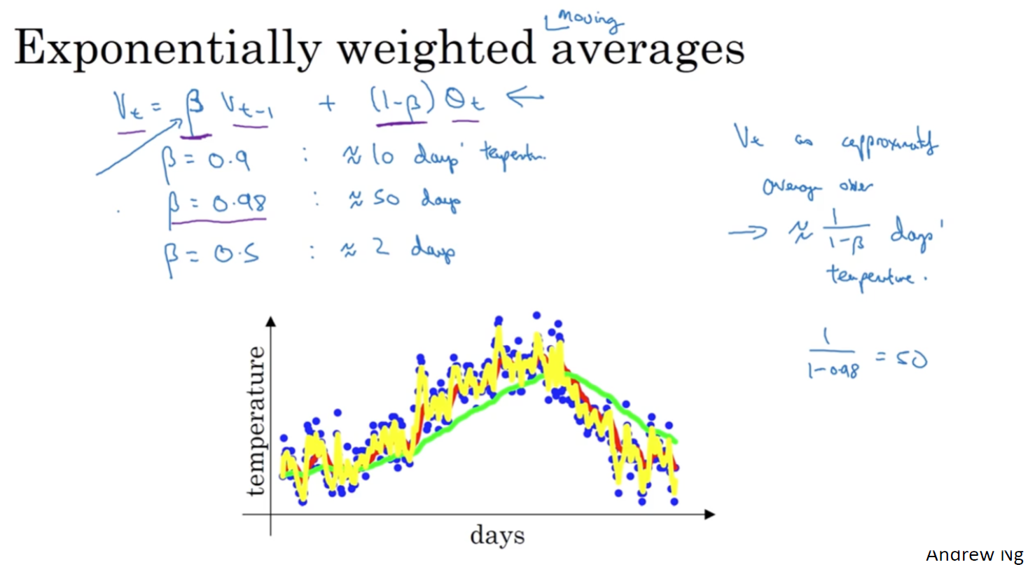 β๊ฐ์ด 0.9 ์ผ ๋๋ ์ด์ 9๊ฐ์ ๊ฐ์ ๋ฐ์(ํ์ฌ ๊ฐ๊น์ง 10๊ฐ์ ํ๊ท ), β๊ฐ์ด 0.98์ด๋ฉด ํ์ฌ ๊ฐ ํฌํจ 50๊ฐ์ ํ๊ท , β๊ฐ์ด 0.5์ด๋ฉด ํ์ฌ ๊ฐ ํฌํจ 2๊ฐ์ ํ๊ท