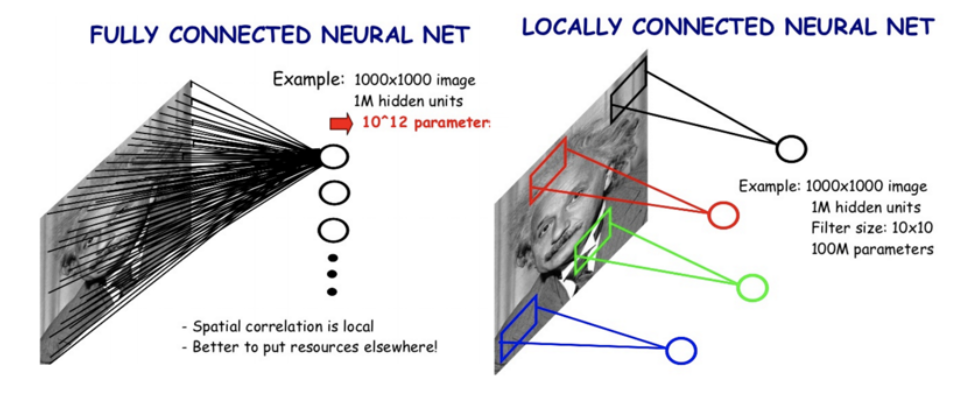 - Convolutional Neural Network(CNN)으로 위의 문제를 해결할 수 있다. Fully → Locally connected NN