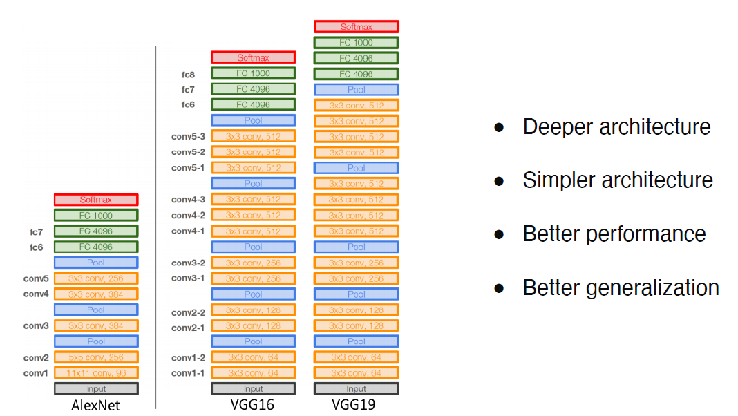- 모든 커널이 3×3, 맥스 풀링이 2×2라는 특징