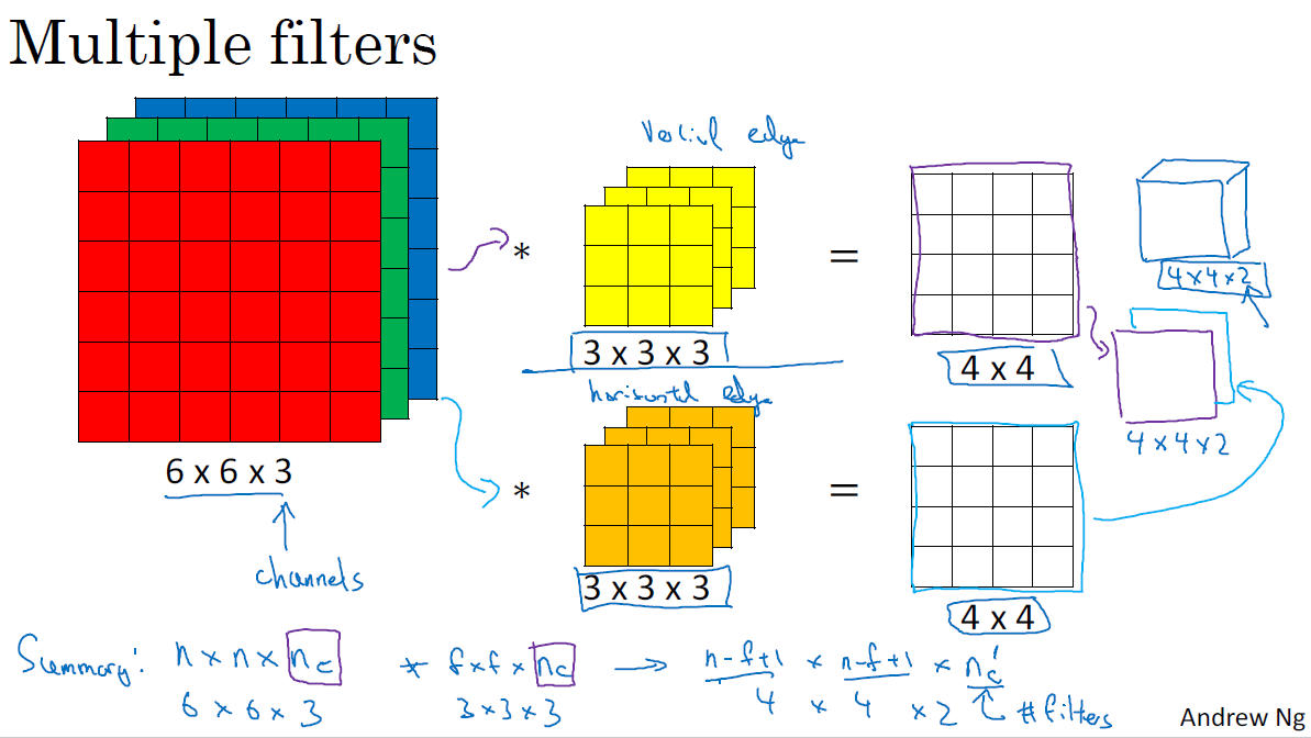 input image์ ์ฑ๋ ๊ฐ์์ convoutional filter์ ์ฑ๋ ๊ฐ์๋ ๊ฐ์์ผ ํ๋ค. ์์ํ์ ๋ณผ๋ฅจ์ ์ฃผ๊ณ ์ถ์ผ๋ฉด conv filter๋ฅผ ์ฌ๋ฌ ์ข ๋ฅ๋ฅผ ์ฌ์ฉํ๋ค.
