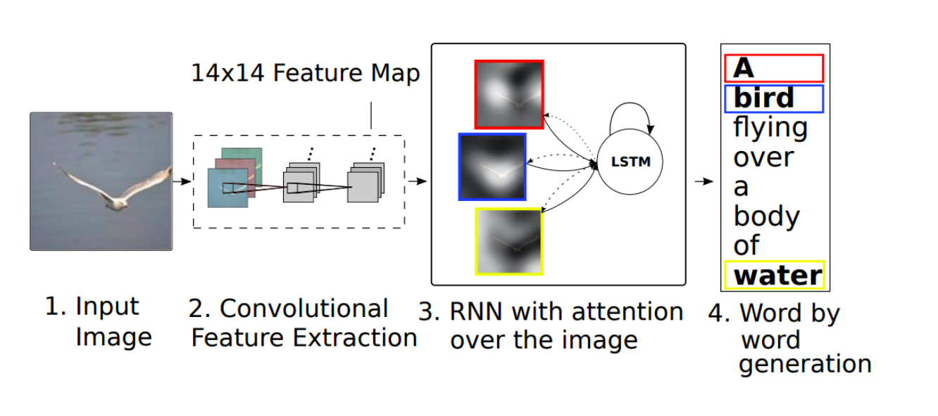 Show, attention(attend), tell : 어떤 feature가 어떤 text로 변환되는지 집중