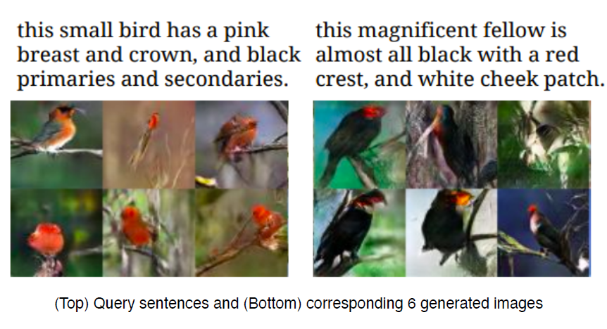 Text를 Image로 주어지는 경우에는 아래와 같이 여러 이미지가 나오므로 generative model을 사용해야 한다.