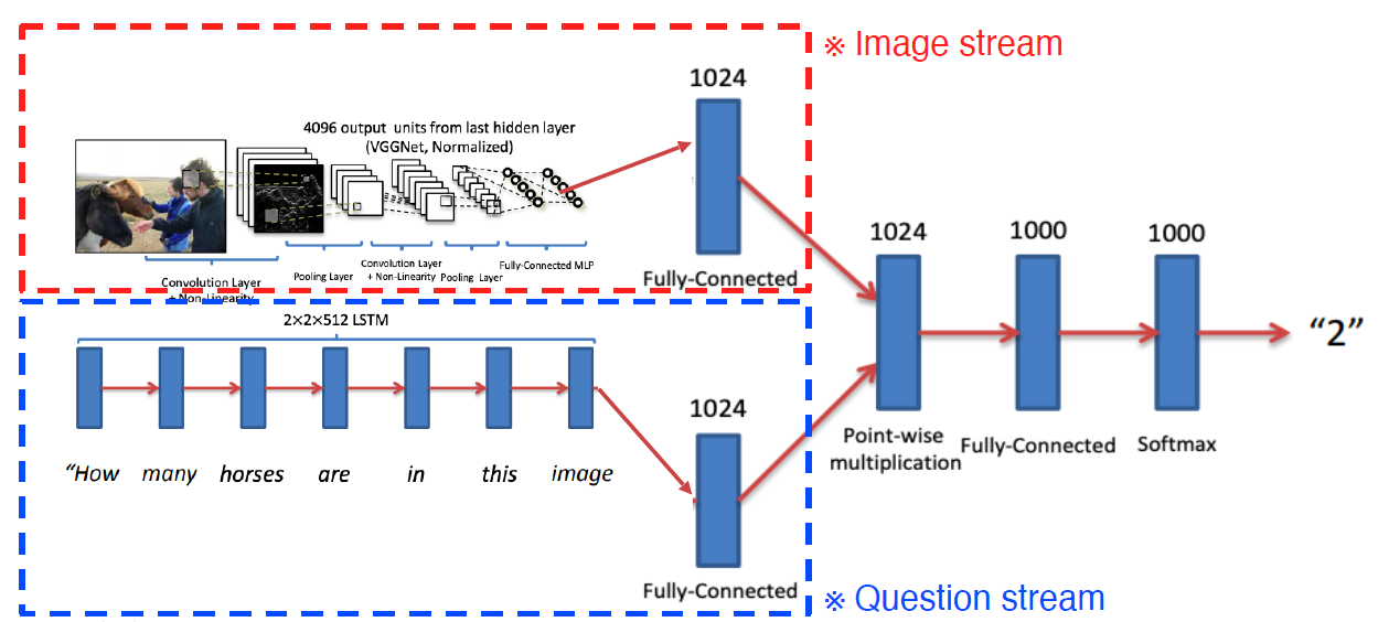 Visual question answering : 이미지를 보고 질문에 대답을 하는 것. end-to-end training