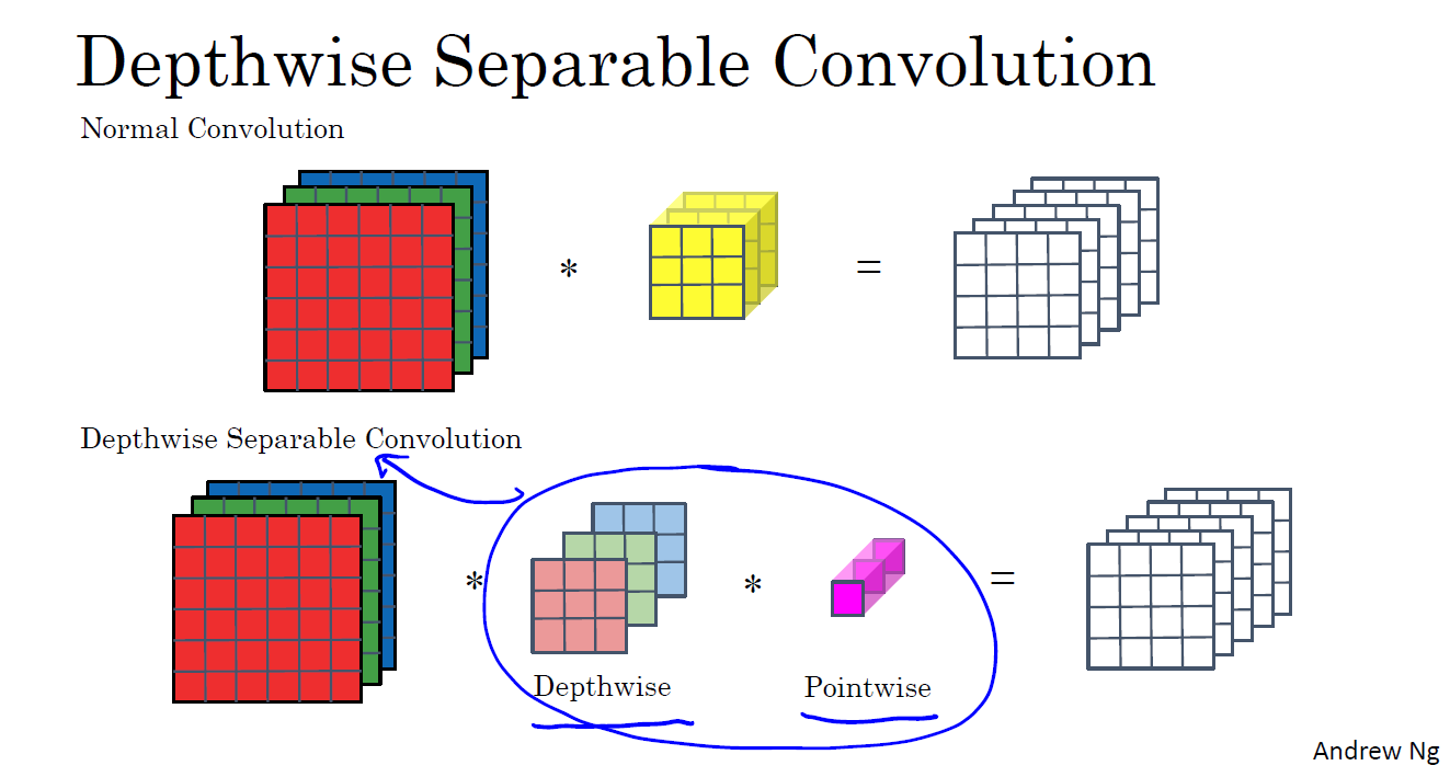 ์ด๋ฅผ depthwise๋ฅผ ์ ์ฉํ๋ฉด Depthwise Convolution๊ณผ Pointwise Convolution ๋ถ๋ถ์ผ๋ก ๋๋์ด์ ๊ณ์ฐํ ์ ์๋ค.