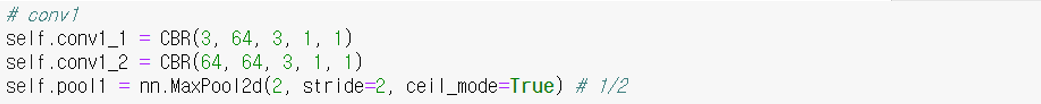 - Conv1 : pooling 과정을 통해 size가 1/2이 됨