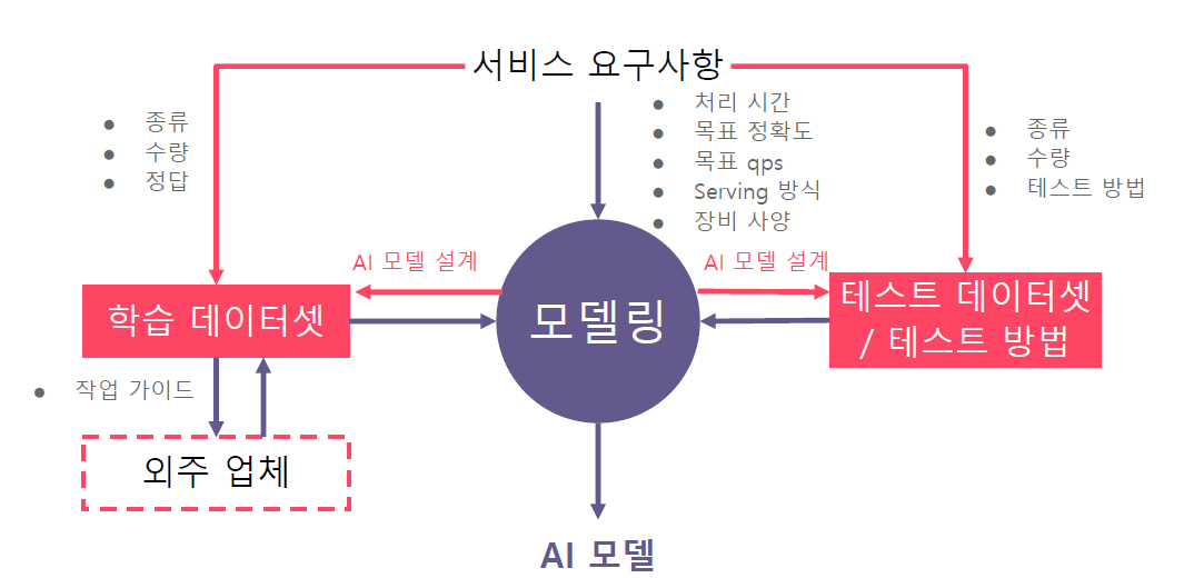 서비스 개발 시에는 데이터셋은 준비되어 있지 않고, 요구사항만 존재한다. 따라서 서비스에 적용되는 AI 개발 업무의 상당 부분이 데이터셋을 준비하는 작업이다.
