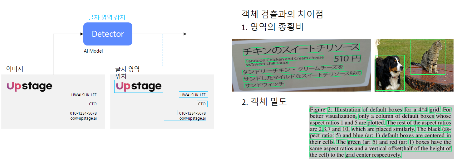 객체 검출과의 차이점은 영역의 종횡비와 객체의 밀도가 다르다는 점이다.