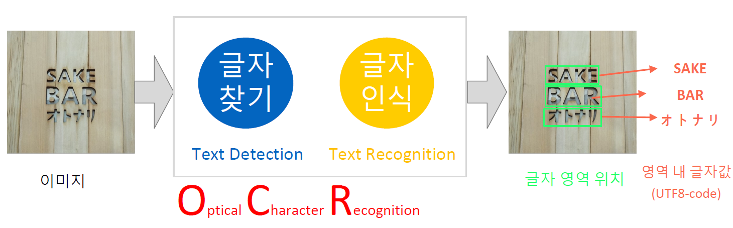 글자 영역을 찾고 영역 내 글자를 인식하는 과정을 통틀어 OCR이라고 할 수 있다