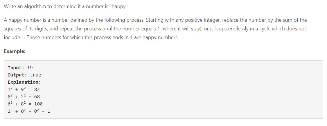5. 3과 4의 경우를 제외하고는 계산을 계속하여 n이 happy number인지 알아봐야 하므로 현재 루프에서 계산된 값을 배열에 저장하고 다음 루프를 돈다(2~4번 과정 반복).