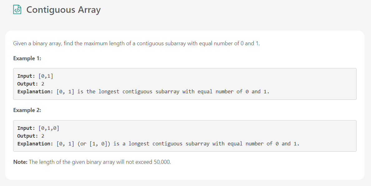 0과 1로 이루어진 nums에서 0은 -1로 생각한다. 예시의 [ 0, 1, 0 ]은 [ -1, 1, -1 ]이 되는 것이다.