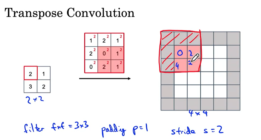 ์ผ๋ฐ convolution์ ๊ฒฝ์ฐ ํฌ๊ธฐ๊ฐ ์์์ง๋ ๋ฐฉํฅ์ผ๋ก ๊ฐ์ง๋ง transpose convolution์ ํฌ๊ธฐ๋ฅผ ํค์ฐ๋ ๋ฐฉํฅ(์๋ณธ ์ฌ์ด์ฆ๋ก ๋ณต๊ตฌ)ํ๋ ๋ฐฉํฅ์ผ๋ก ์งํ๋๋ค.